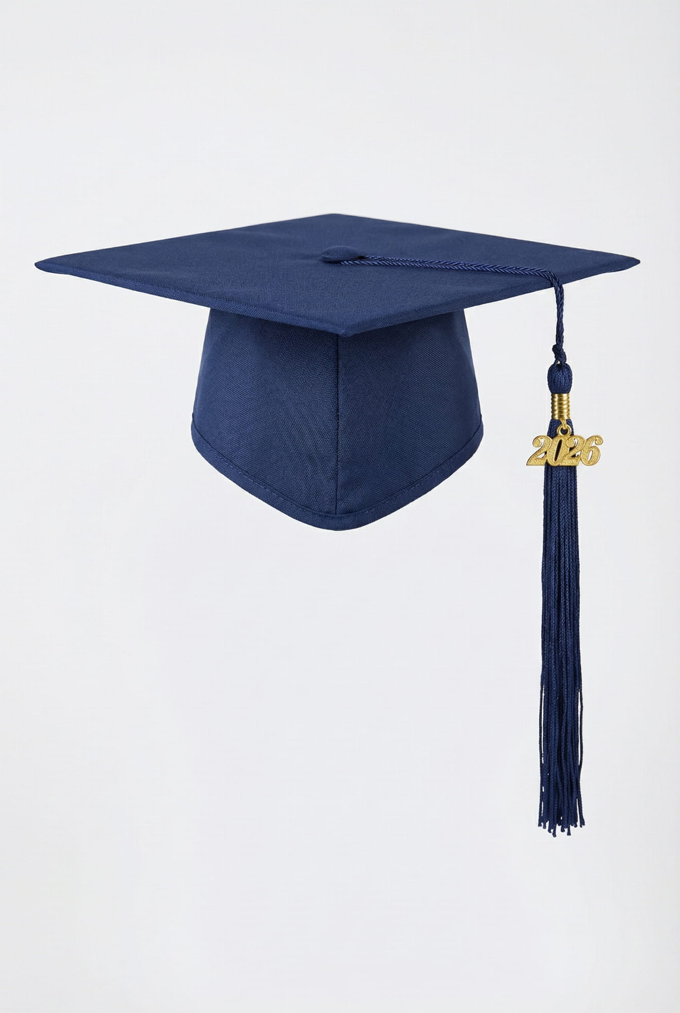 Elegante Marineblauwe Afstudeerpet 2026 met Kwast en Gouden Bedeltje