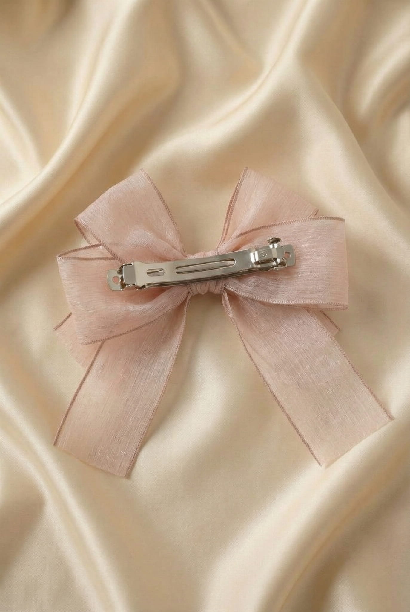 Deze prachtige haarspeld in de vorm van een strik is het perfecte accessoire voor kleine meisjes die willen stralen tijdens speciale momenten. Gemaakt van een verfijnde, glanzende stof in een zachte pastelroze kleur, combineert het tijdloze elegantie met speelse charme. Met een royale breedte van 13 cm trekt deze haarspeld meteen de aandacht en geeft elk kapsel een feestelijke uitstraling.