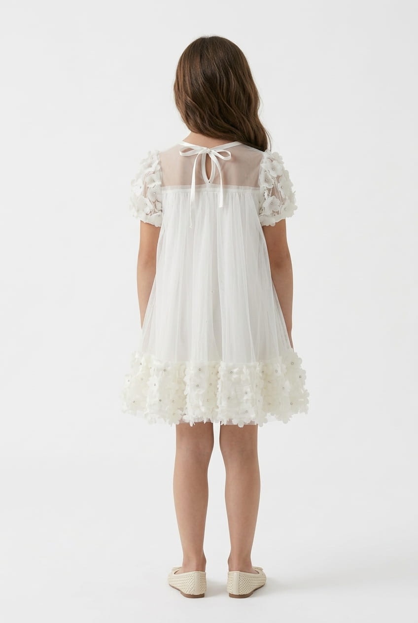 Feestjurk voor Meisjes Romy Crèmewit met 3D Bloemen