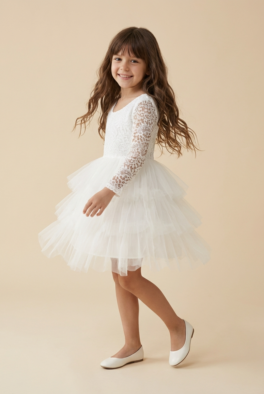 De jurk zal de schoonheid van het meisje perfect benadrukken en zal eruitzien als een engel.